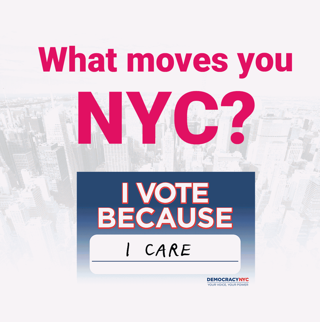 I also created GIFs to go with this campaign using photos of community members holding up their DemocracyNYC signs at events.